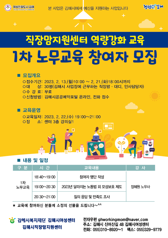 여성센터 직장맘 역량강화 노무교육 참여자 모집