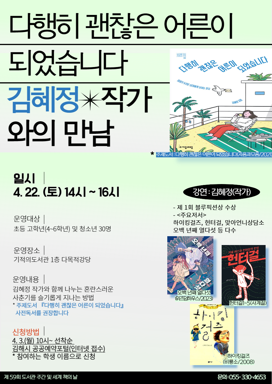 기적의도서관 (도서관주간) 『다행히 괜찮은 어른이 되었습니다』 김혜정 작가와의 만남