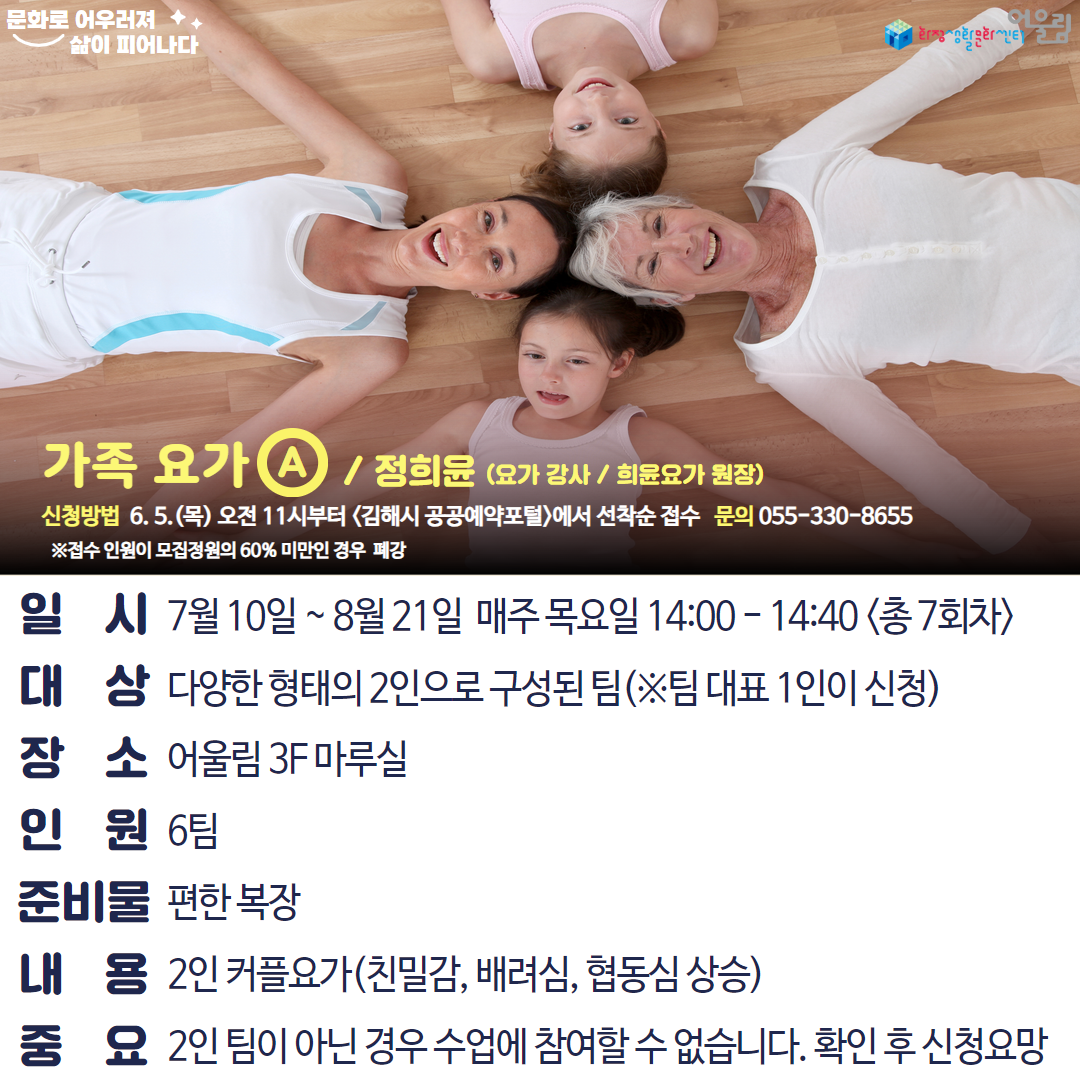 화정생활문화센터 어울림 [여름방학을 부탁해-가족] 가족 요가 A