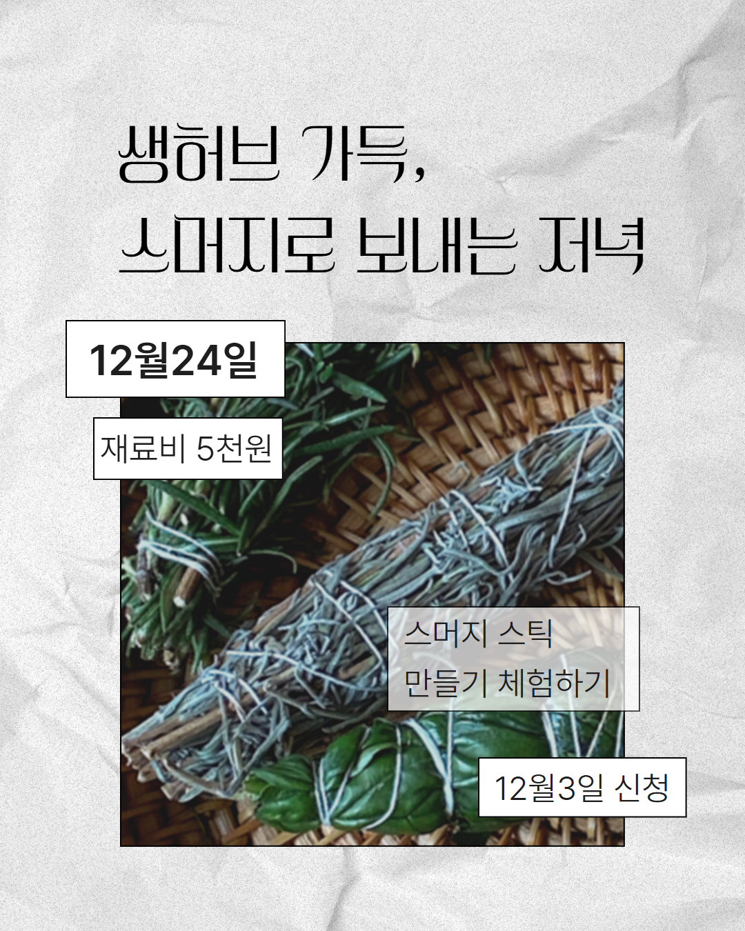 율하도서관 (은은한 저녁을 위하여) 생허브 가득, 스머지로 보내는 저녁