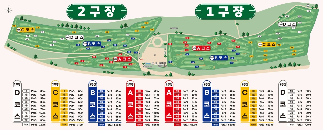 C코스 9홀 727m, D코스 9홀 719m